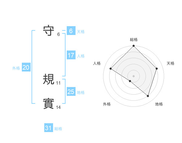 守 規實さんの総格は31画の5点!