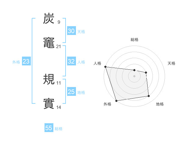 炭竈 規實さんを姓名の画数から五運を鑑定