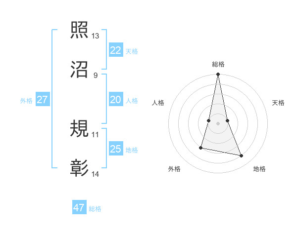照沼 規彰さんを姓名の画数から五運を鑑定