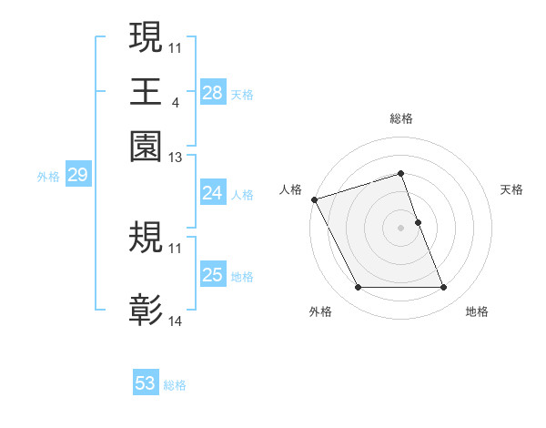 現王園 規彰さんを姓名の画数から五運を鑑定