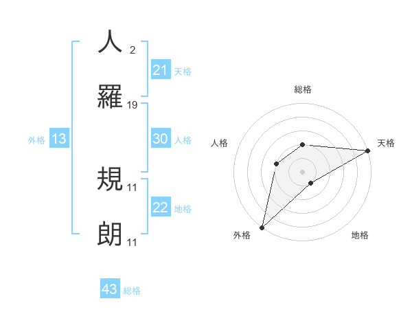 人羅 規朗さんの天格は21画の5点!