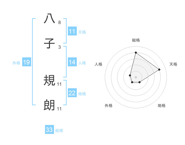 八子 規朗さんの総格は33画の4点!