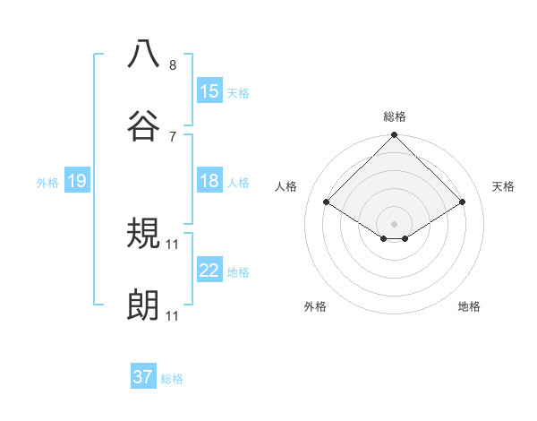 八谷 規朗さんの総格は37画の5点!