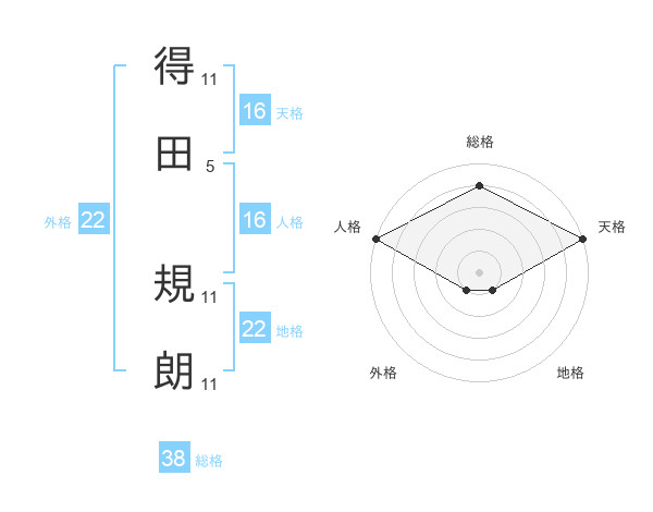 得田 規朗さんの地格は22画の1点!