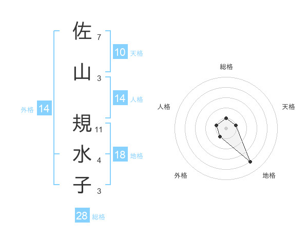佐山 規水子さんを姓名の画数から五運を鑑定