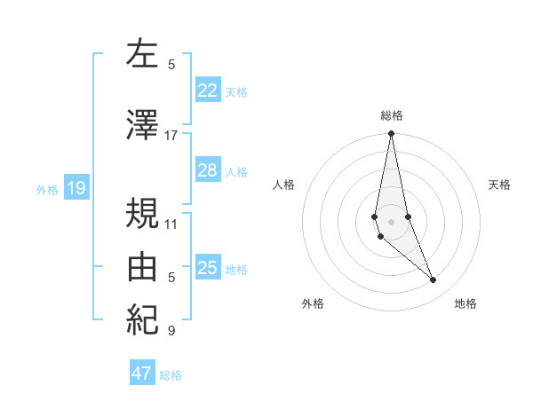 左澤 規由紀さんを姓名の画数から五運を鑑定