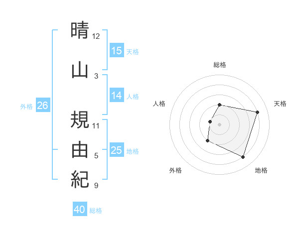 晴山 規由紀さんの外格は26画の2点!