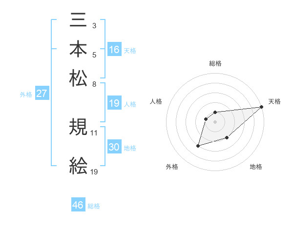 三本松 規絵さんの天格は16画の5点!