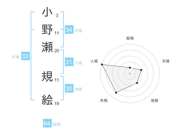 小野瀬 規絵さんを姓名の画数から五運を鑑定