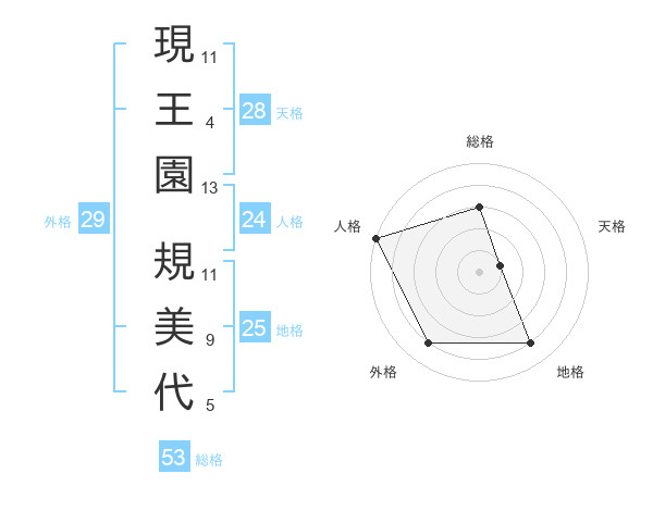 現王園 規美代さんを姓名の画数から五運を鑑定