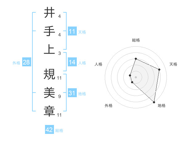 井手上 規美章さんを姓名の画数から五運を鑑定