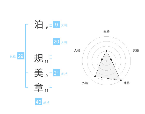 泊 規美章さんの総格は40画の2点