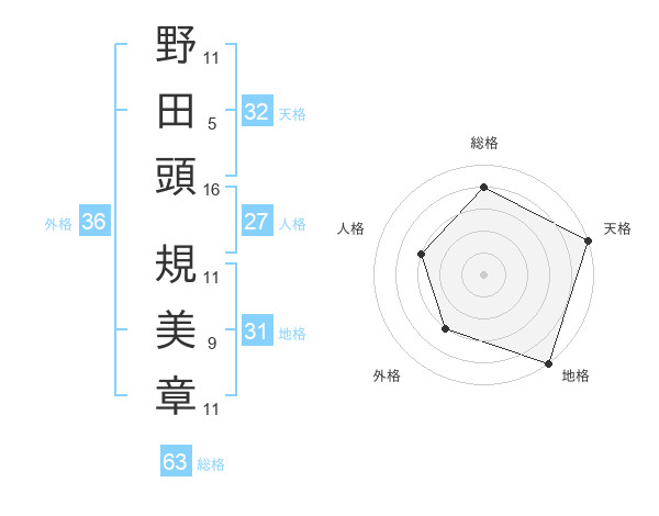 野田頭 規美章さんを姓名の画数から五運を鑑定