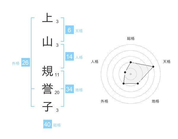 上山 規誉子さんの天格は6画の4点!