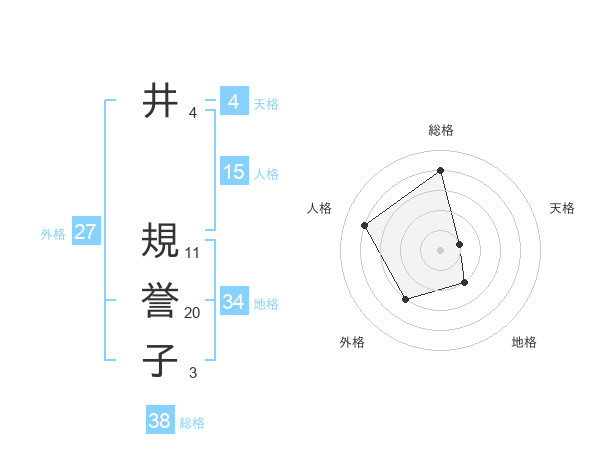 井 規誉子さんの総格は38画の4点!
