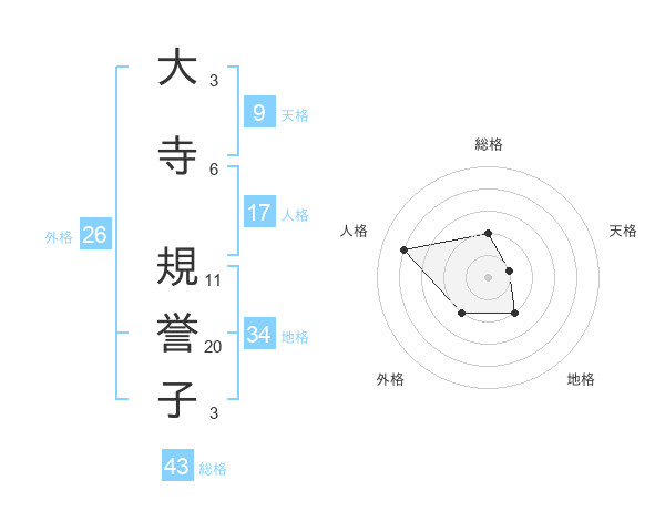 大寺 規誉子さんを姓名の画数から五運を鑑定
