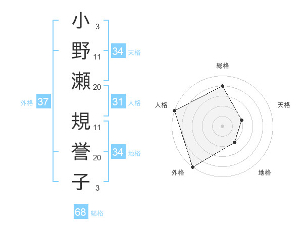 小野瀬 規誉子さんを姓名の画数から五運を鑑定
