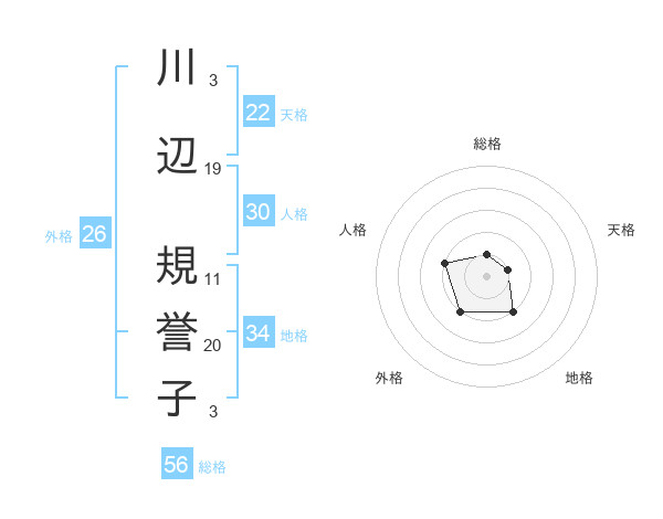 川辺 規誉子さんの天格は22画の1点!