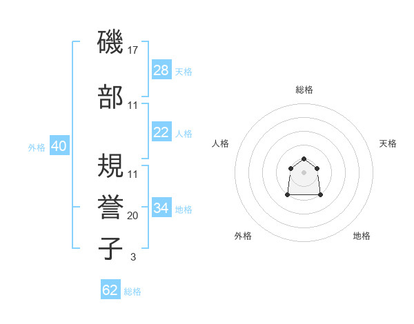 磯部 規誉子さんの地格は34画の2点