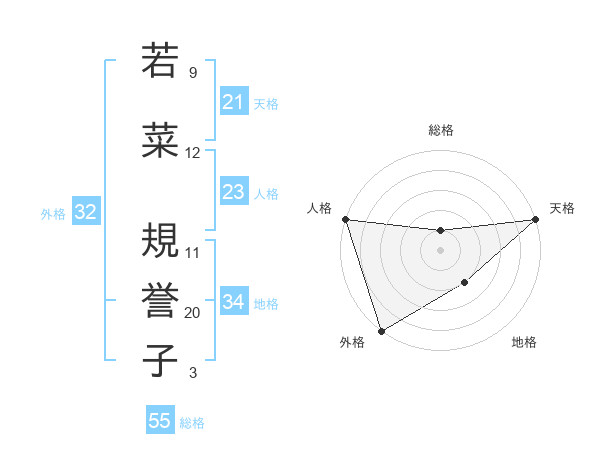 若菜 規誉子さんを姓名の画数から五運を鑑定