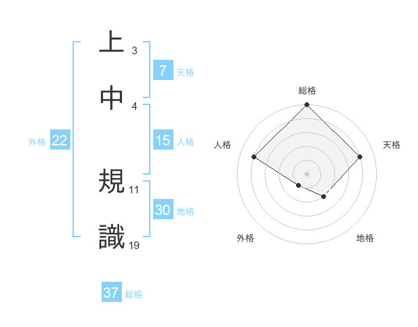 上中 規識さんの総格は37画の5点!