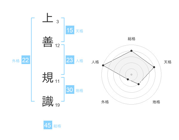 上善 規識さんの天格は15画の4点!