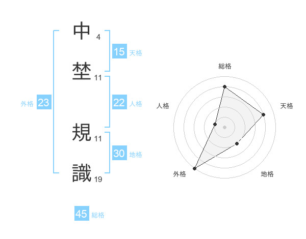 中埜 規識さんの外格は23画の5点!