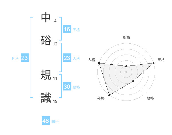 中硲 規識さんの外格は23画の5点!