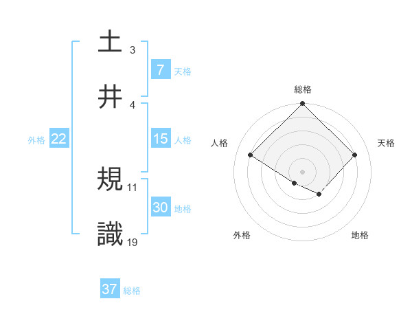 土井 規識さんの総格は37画の5点!