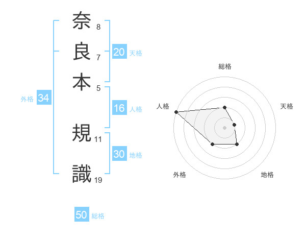 奈良本 規識さんの総格は50画の2点!