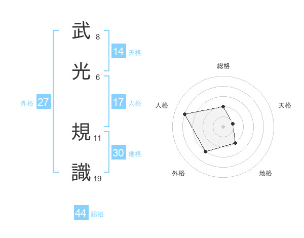 武光 規識さんの総格は44画の2点!