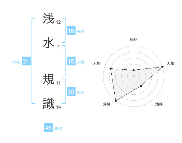 浅水 規識さんの総格は46画の1点!