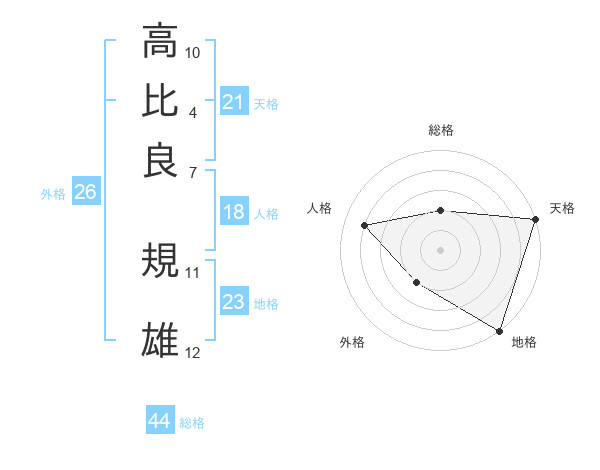 高比良 規雄さんを姓名の画数から五運を鑑定