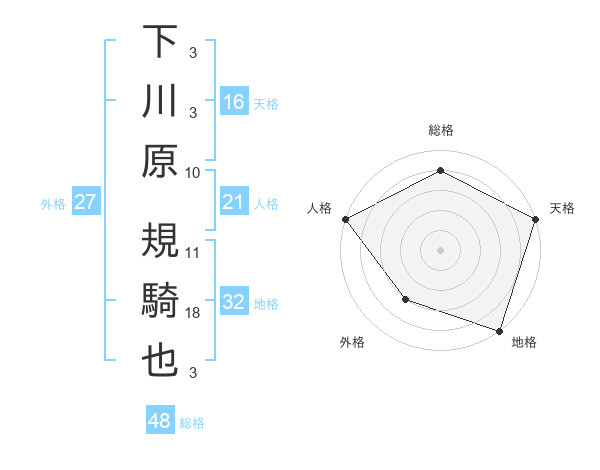 下川原 規騎也さんを姓名の画数から五運を鑑定