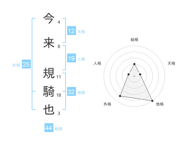 今来 規騎也さんを姓名の画数から五運を鑑定