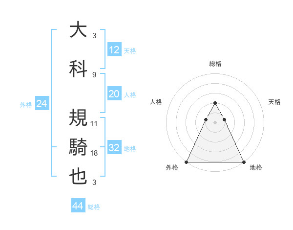 大科 規騎也さんの総格は44画の2点!