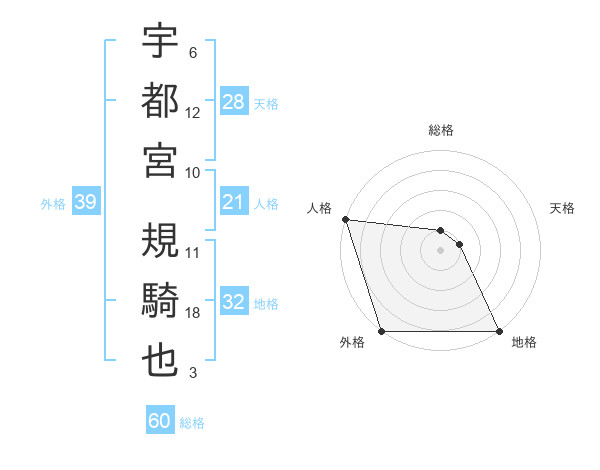 宇都宮 規騎也さんを姓名の画数から五運を鑑定