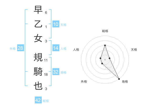 早乙女 規騎也さんを姓名の画数から五運を鑑定