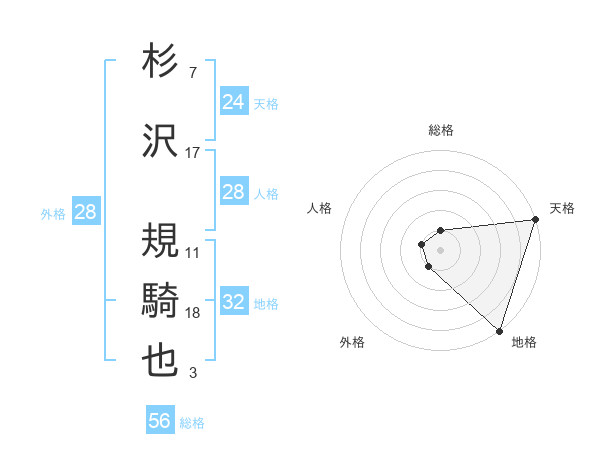 杉沢 規騎也さんを姓名の画数から五運を鑑定