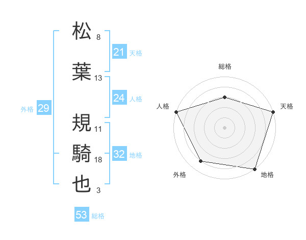 松葉 規騎也さんを姓名の画数から五運を鑑定