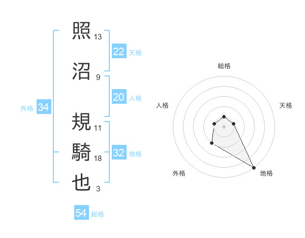 照沼 規騎也さんを姓名の画数から五運を鑑定
