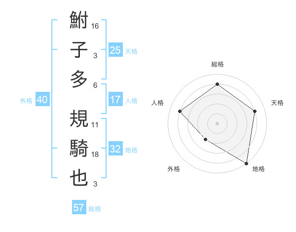 鮒子多 規騎也さんを姓名の画数から五運を鑑定