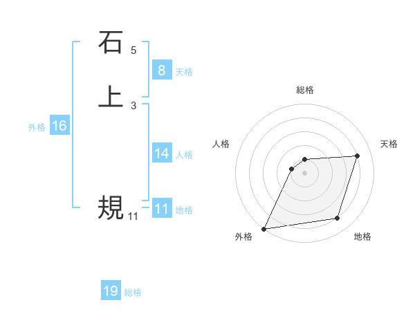 石上 規さんの外格は16画の5点!