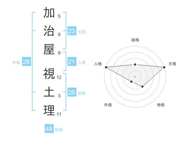 加治屋 視土理さんの天格は23画の5点!