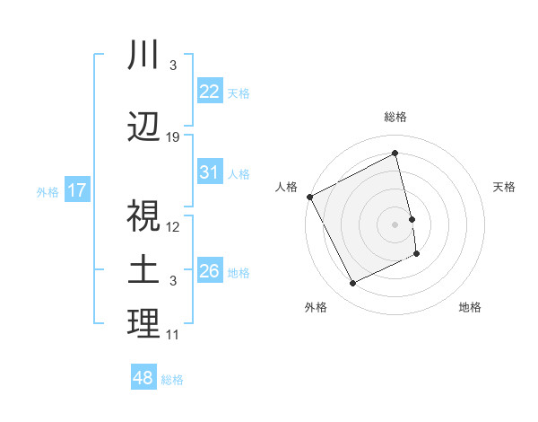 川辺 視土理さんの総格は48画の4点!