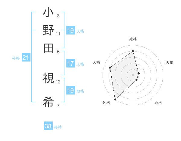 小野田 視希さんの総格は38画の4点!
