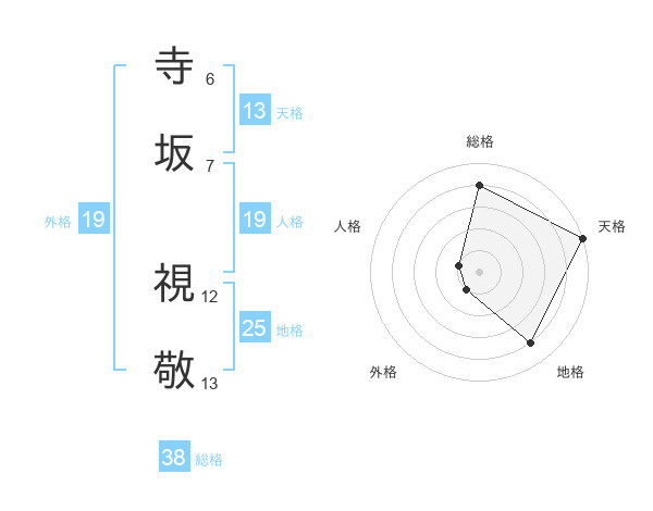寺坂 視敬さんの総格は38画の4点!