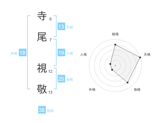 寺尾 視敬さんの総格は38画の4点!