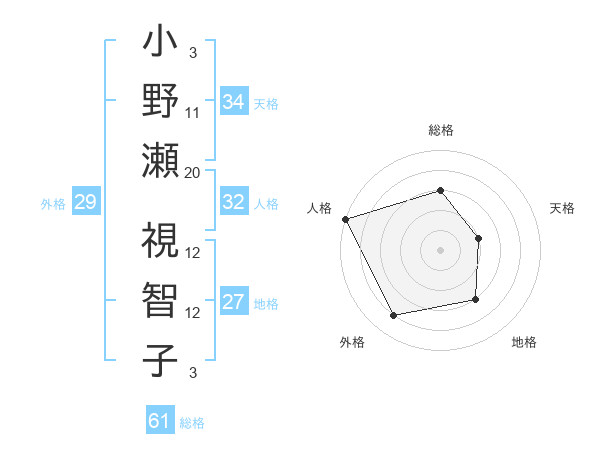 小野瀬 視智子さんの総格は61画の3点!