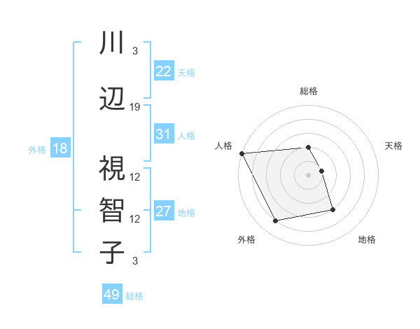 川辺 視智子さんを姓名の画数から五運を鑑定